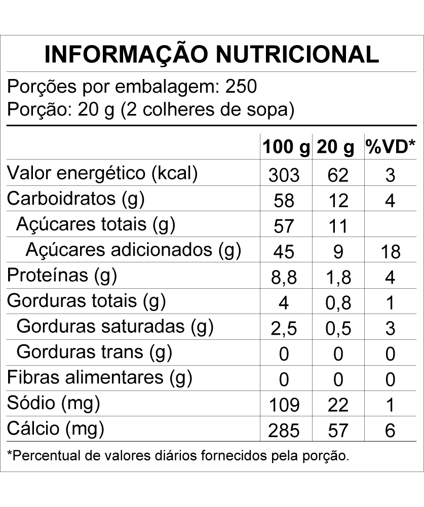 Ingredientes: Leite semidesnatado e/ou leite em pó semidesnatado reconstituído, açúcar e lactose.